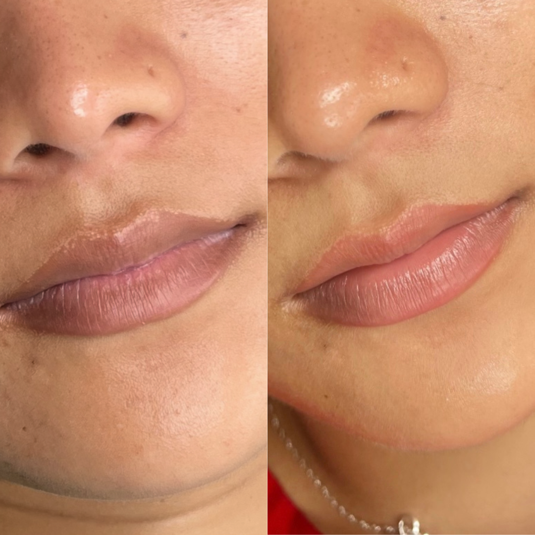 Lip blush enhances the natural color and shape of your lips, giving them a soft, even tint and subtle definition. Lip neutralisation is a technique used to correct uneven or dark lip pigmentation, creating a more neutral base before applying lip blush (optional) or to balance natural lip color.